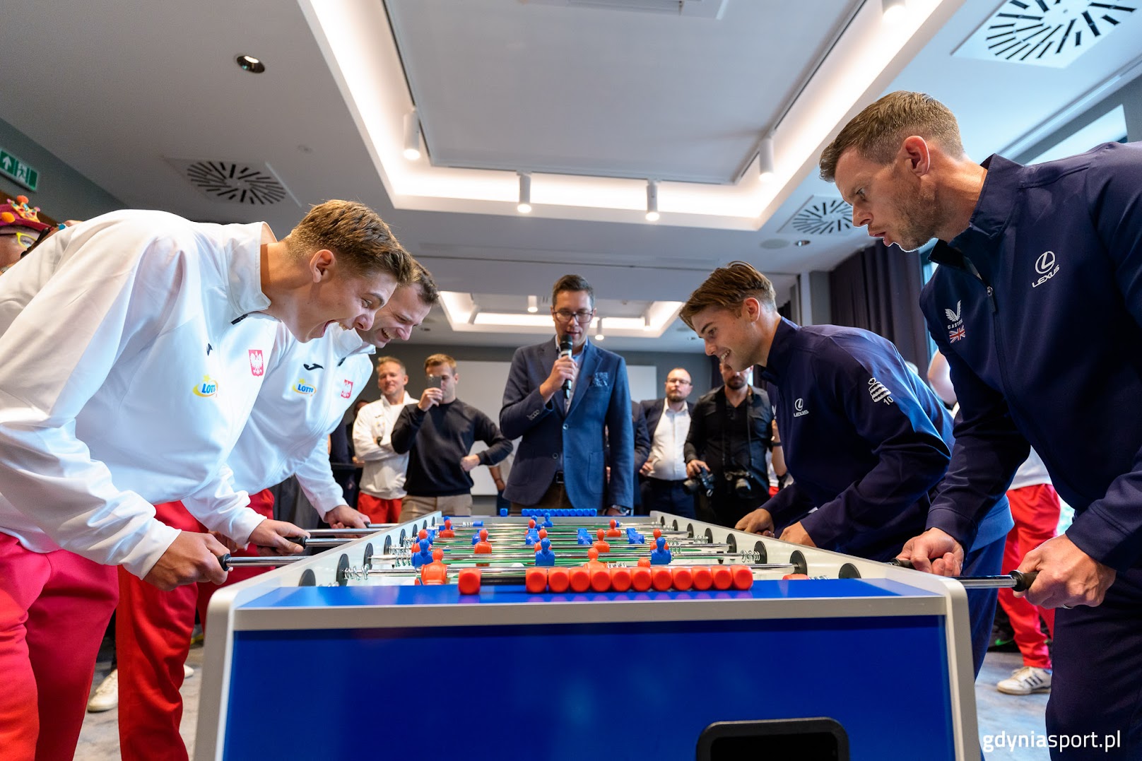 Ta rywalizacja przy „piłkarskim stole” poprzedziła czwartkową Draw Ceremony połączoną z konferencją prasową z udziałem obydwu reprezentacji. Piłeczkę z nazwiskiem Norriego wylosował Przewodniczący Rady Miasta Gdynia Tadeusz Szemiot i w ten sposób ustalił kolejność gier na piątek.