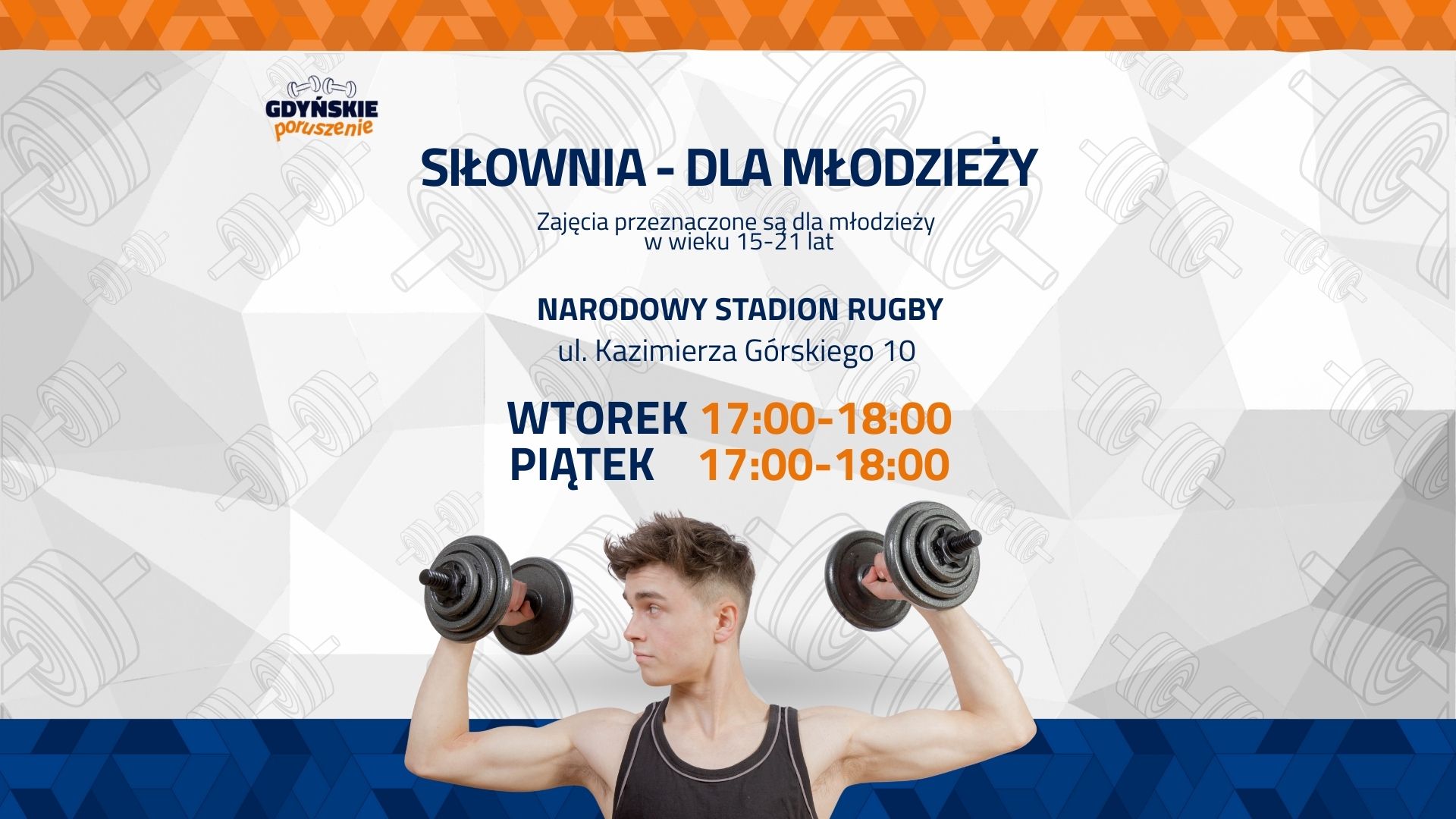 Od najbliższego piątku startuje nowy cykl bezpłatnych zajęć sportowych „Siłownia – Gdyńskie Poruszenie” – dedykowany młodzieży w wieku 15–21 lat. To doskonała okazja, by poprawić kondycję, zadbać o zdrowie i spędzić czas w sportowej atmosferze.